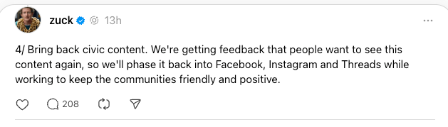 Let’s be clear, this isn’t actually about free speech or empowering users. I believe it is about Meta protecting its bottom line while deflecting responsibility away from the harm it causes. Mark Zuckerberg isn’t leading with a vision for the future; he’s just playing politics, switching sides depending on who’s in power. And while he profits, the rest of us are left dealing with the consequences of platforms that amplify lies and division.